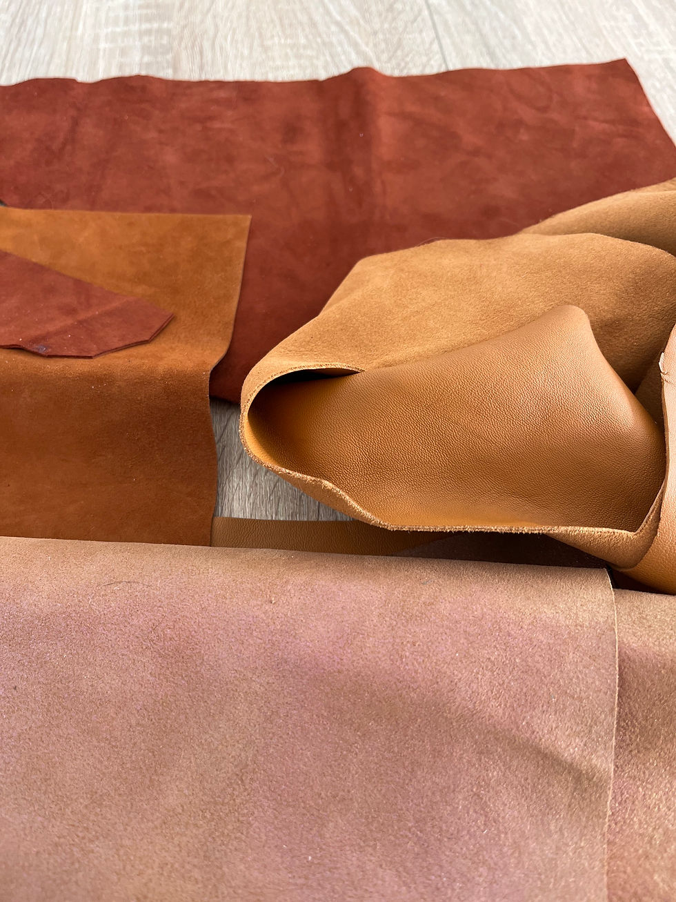 Chutes de cuir de qualité, issus de peaux provenants du surplus de haute couture. Ces chutes viennent de mes collections précédentes.