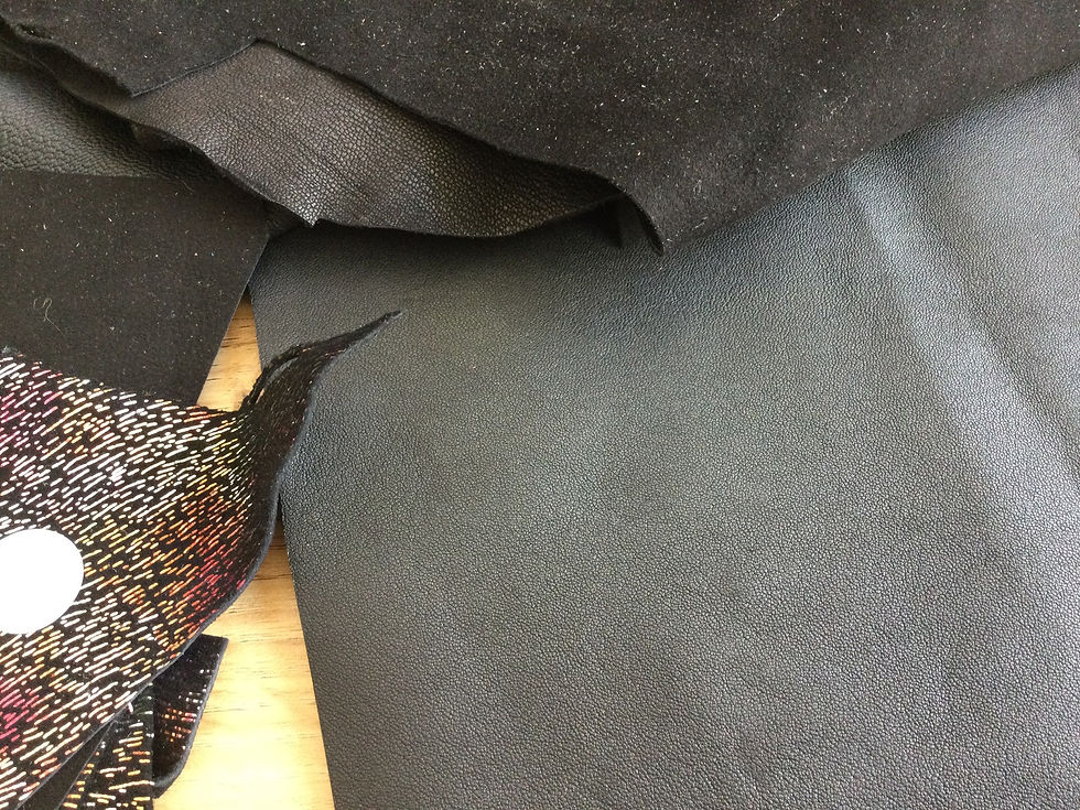 Chutes de cuir de qualité, issus de peaux provenants du surplus de haute couture. Ces chutes viennent de mes collections précédentes.